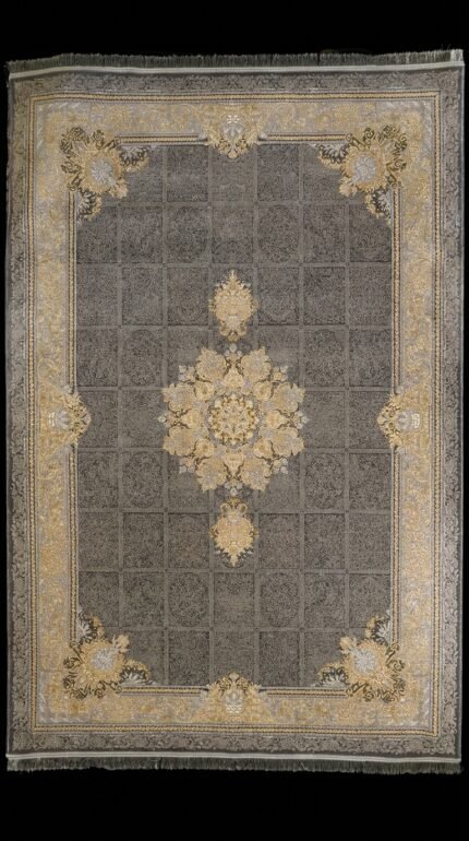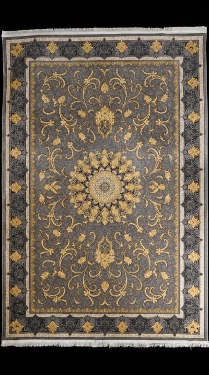 Luxury Grey & Gold Carpet – Elegant Classic Design Premium Luxury Carpet in Oman This stunning Luxury Grey Gold Carpet
