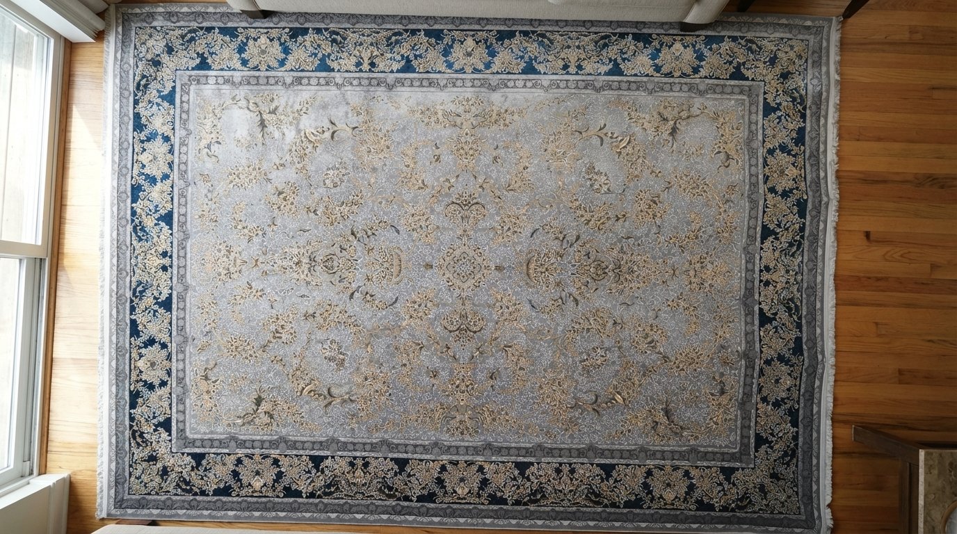 With a weaving density of 1500 reeds and 4500 knots, this carpet shows extremely fine details and a beautiful Persian-inspired design. The size 2.5 × 3.5 meters makes it ideal for larger rooms where a statement carpet can transform the atmosphere of the space.