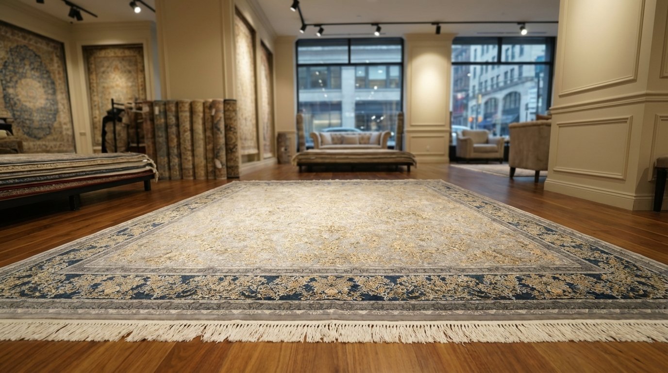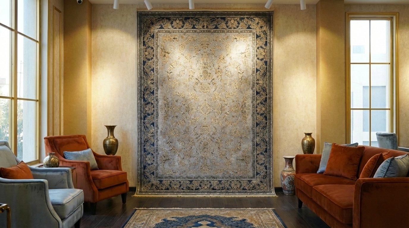 Because of its neutral palette, the beige silk carpet works beautifully with different furniture colors and interior styles.