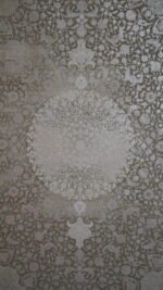The design features a delicate central medallion pattern surrounded by floral and ornamental motifs inspired by traditional Persian art. The soft beige and cream tones create a calm and elegant look that blends easily with modern or classic décor.