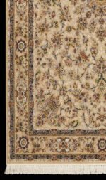 This particular carpet features a delicate floral pattern inspired by traditional Persian designs. The light cream background combined with colorful floral elements creates a warm and luxurious look that works beautifully in majlis areas, living rooms, and elegant homes.