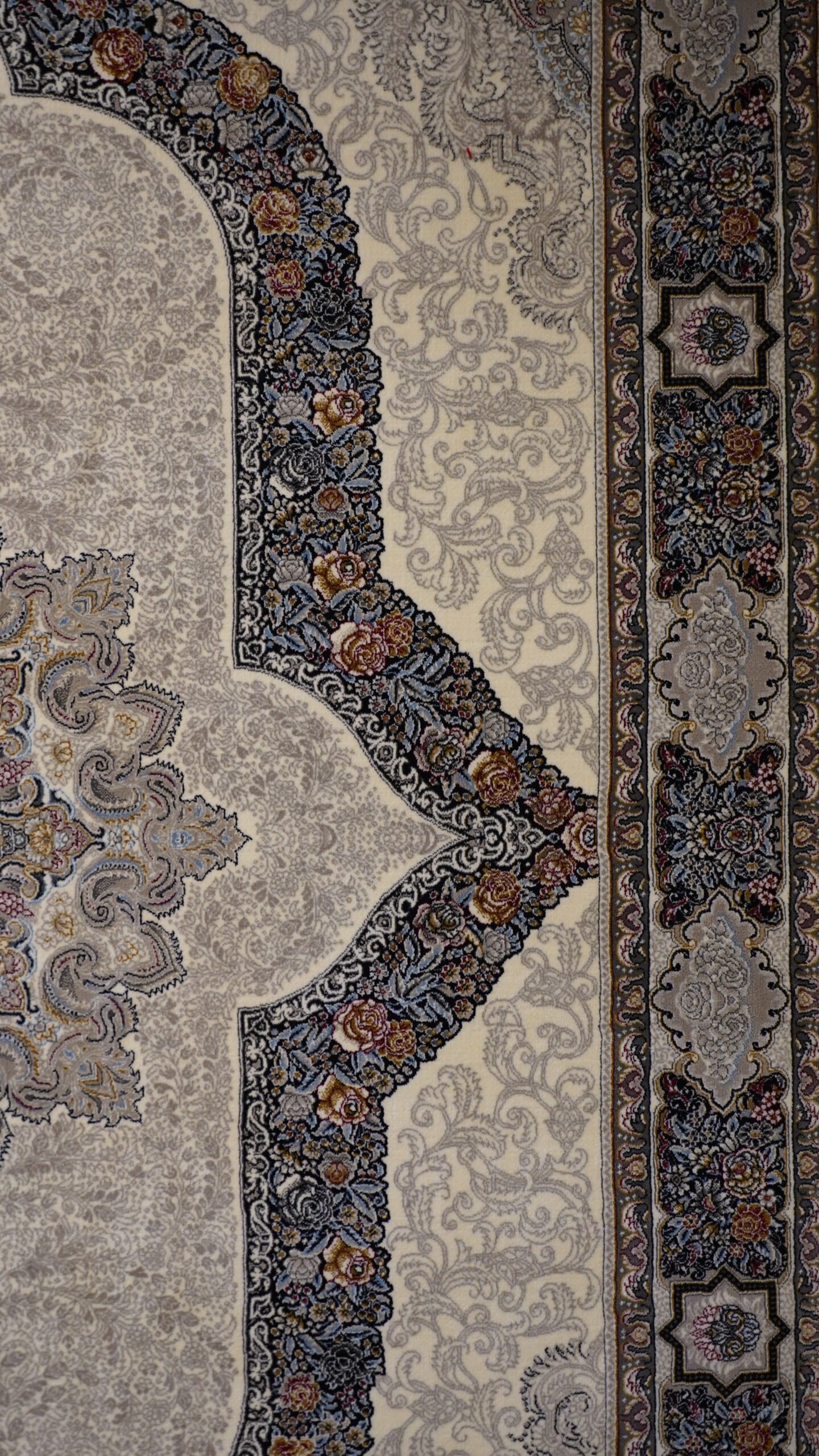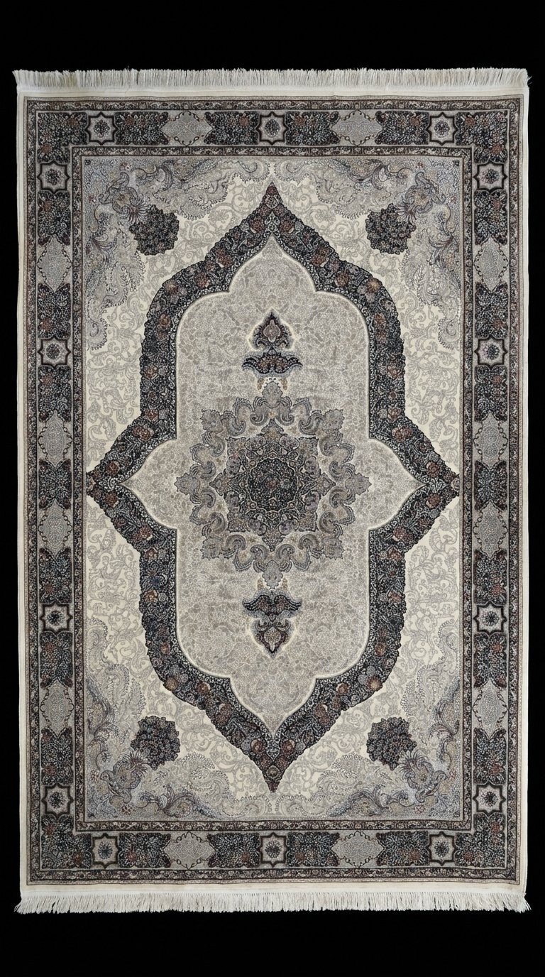 This rug combines traditional Persian-inspired design with modern technology, offering both beauty and strength. The soft neutral tones make it perfect for elegant interiors, majlis, and living rooms.