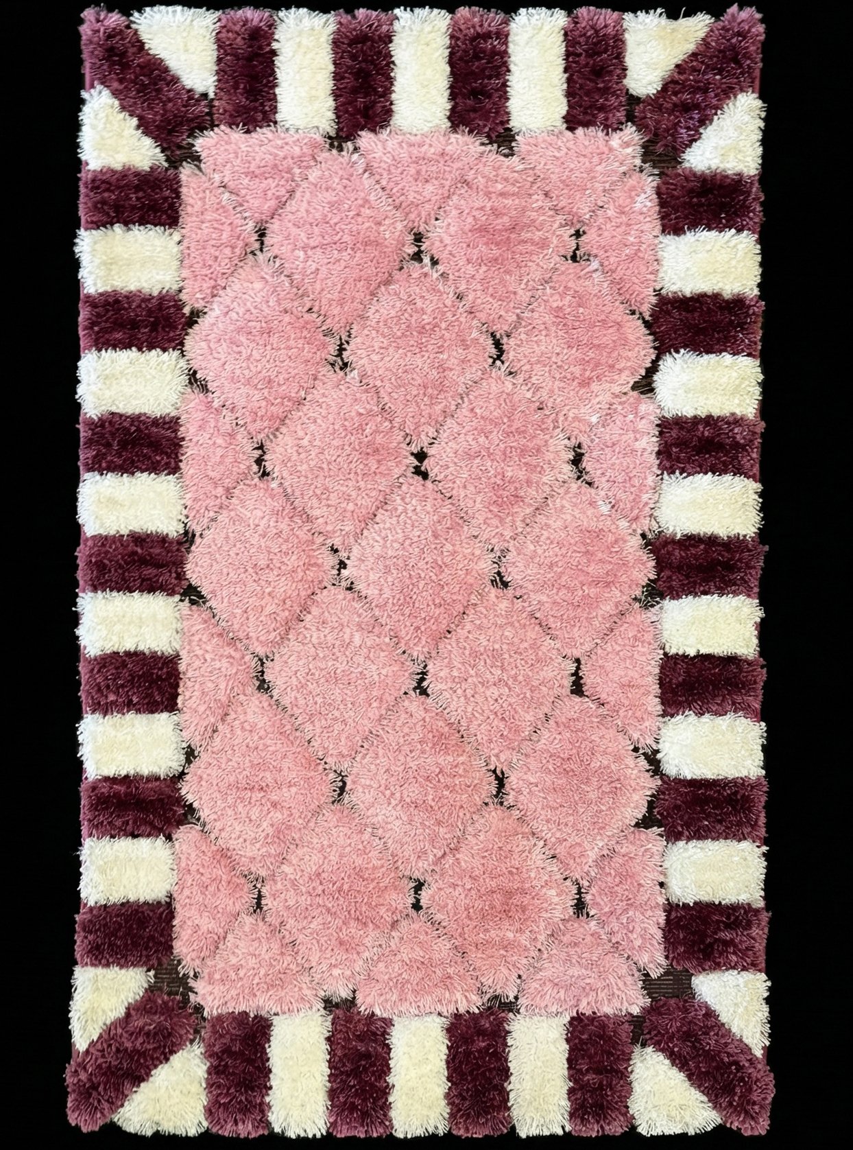 The Pink Shaggy Carpet Oman from ArdanFurniture is designed to stand out with its distinctive look and ultra-soft texture. Featuring a plush pink center with a bold striped border, this rug adds personality and warmth to any space.