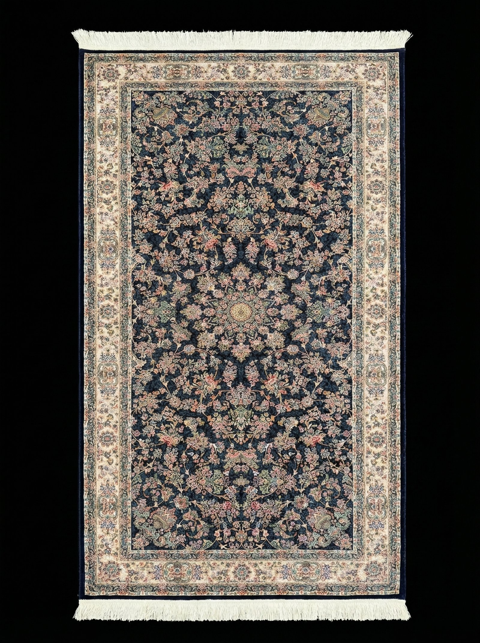 Silk Carpet Oman 1200 Reeds 1×2 Navy – Luxury Persian Rug by ArdanFurniture